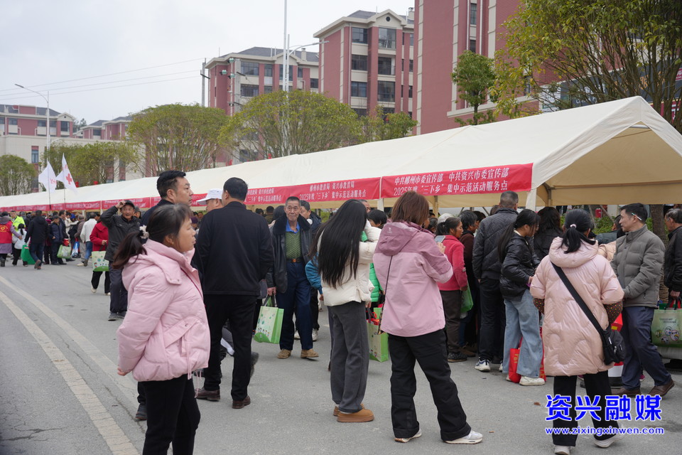 活动现场还开设了“文明实践集市”。来自郴州和资兴两级文化、法律、农业、卫生、教育等50余家部门和单位的工作人员摆开服务台,为群众提供科普宣传、政策解读、健康咨询、书写春联、发放良种等多样化的惠民服务。