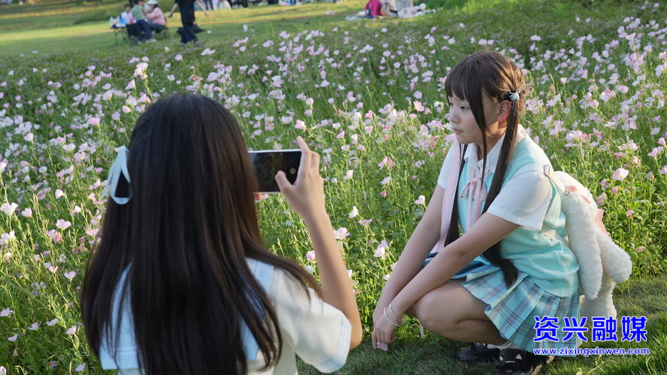 王家庄绿地公园的焕新,是我市为迎接2026年郴州旅发大会、完善东江湖景区旅游配套的一项内容。公园自2025年启动首轮基础改造以来,通过打造月见草花海、修建休闲游步道和休闲长廊等一系列升级工程,不断优化公园生态环境,完善休闲配套设施,完成了从普通城市绿地到综合性生态休闲公园的华丽蜕变。“听说东江湖这边有一片花海拍照特别出片,我和闺蜜特意来的,希望东江湖这边多种一些花,也希望大家多多支持我们东江湖,多来旅游。”市民曾楦曦赞叹道。
